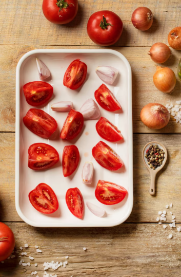 Coloca los tomates cherry en una fuente apta para horno. Rocía con AOVE, sal, pimienta y orégano. Hornea a por 15 minutos, hasta que se ablanden y caramelicen ligeramente. El calor maximiza la liberación de licopeno.