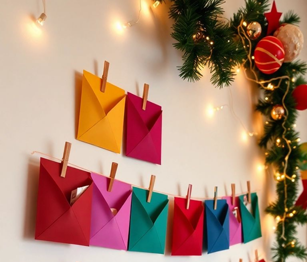 Esta idea, que solo necesita tres materiales básicos (sobres, cuerda y pinzas), se convierte en un centro de atención de la decoración navideña de tu hogar. No solo es un tutorial DIY navidad sencillo, sino que te permite elegir el tipo de sorpresas calendario Adviento que de verdad importan a tu familia. ¡Vamos a crear magia!