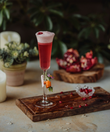 - El toque final. Decora con unas cuantas semillas de granada flotando elegantemente en la superficie del líquido. También puedes añadir una rodaja fina de lima o un twist de naranja para un contraste cítrico opcional.