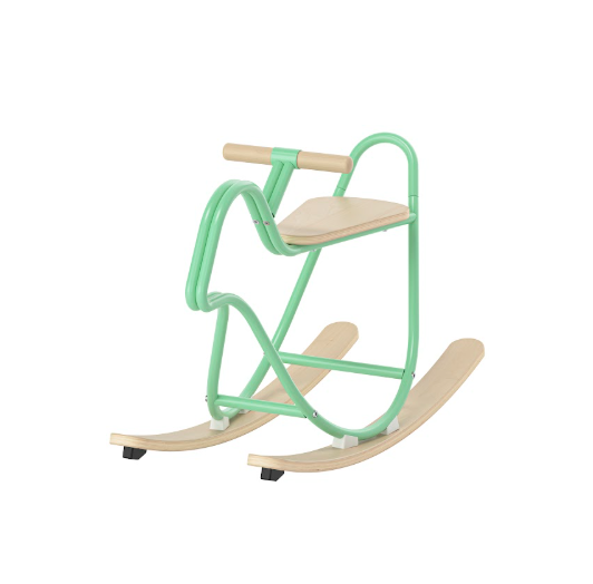 La silla MAMMUT, uno de los clásicos infantiles diseñado hace 30 años, se transforma con una funda afelpada en tonos rosa o azul. Piezas de almacenaje con forma de gato y perchero en forma de cactus, combinan diseño y funcionalidad. Un puf de almacenaje revela a su “monstruo interior” al abrirse, mostrando una sonrisa llena de dientes, mientras que un caballito mecedor reinterpretado como ave se presenta como una mezcla entre escultura y juguete. También hay reinterpretaciones de juguetes tradicionales que funcionan tanto como objetos decorativos como elementos para jugar.