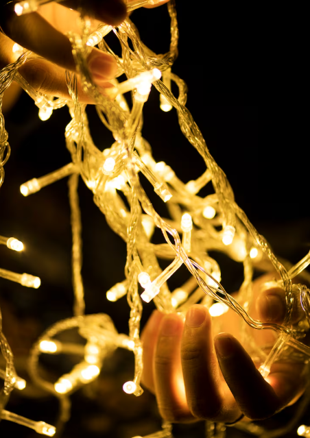 Luces navideñas: no te limites al árbol. utiliza guirnaldas de luces para enmarcar ventanas, decorar estanterías o introducirlas en frascos de vidrio y botellas vacías.