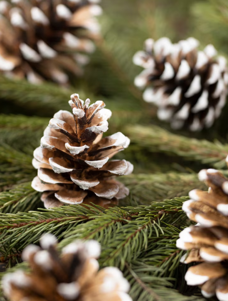 - Adornos con elementos naturales. Recolecta piñas del parque. puedes pintarlas de colores vibrantes, rociarlas con purpurina plateada o atarles un lazo de yute o tela de saco.