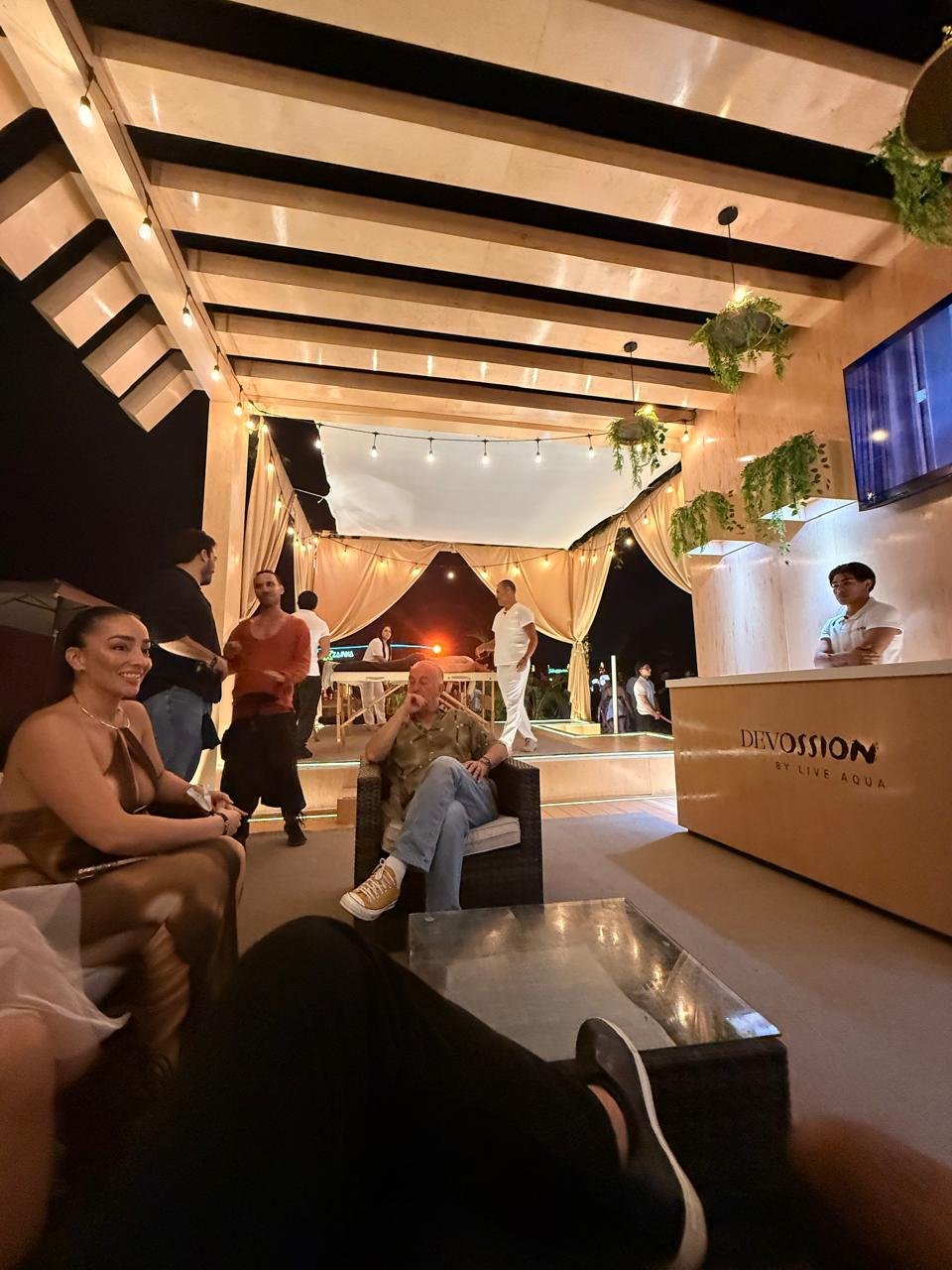Al ritmo de grandes DJs de talla internacional como David Guetta, ANTS, Black Coffe, Rüfüs Du Sol, Posadas conjuntó un exclusivo espacio que iguala al spa insignia del hotel, Cenote Spa, ofreciendo a todos los asistentes masajes relajantes y suecos sin ningún costo, permitiendo vivir un primer acercamiento a la filosofía que define a Devossion By Live Aqua. Un concepto inspirado en la esencia de los cenotes del caribe mexicano, un santuario en donde el agua y el silencio transforman la energía en equilibrio.