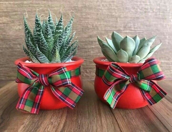 La técnica de anudar sigue siendo tu base, pero el material y la presentación son los que infunden el espíritu de la Navidad en tus macetas. Aquí tienes cuatro ideas para decorar macetas Navidad con tus DIY lazos navideños: