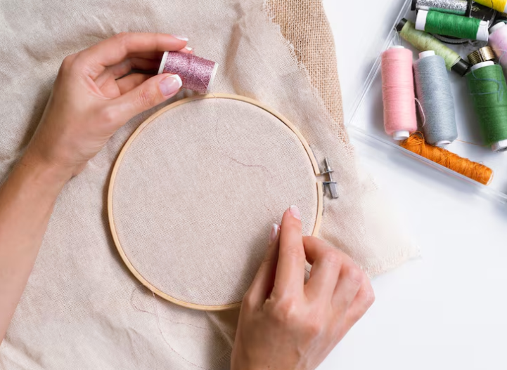 Aro de bordar (bastidor). Te ayudará a mantener la tela tensa y facilitar las puntadas.