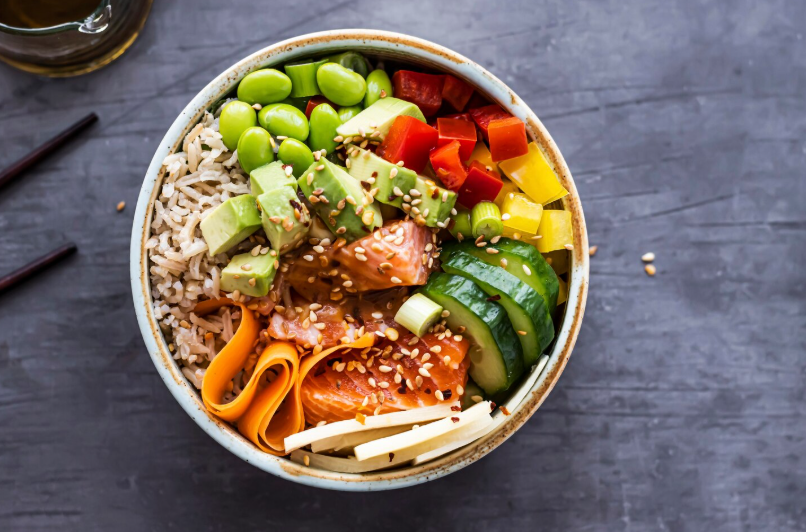 Bowl de salmón, quinoa y vegetales: Comida completa