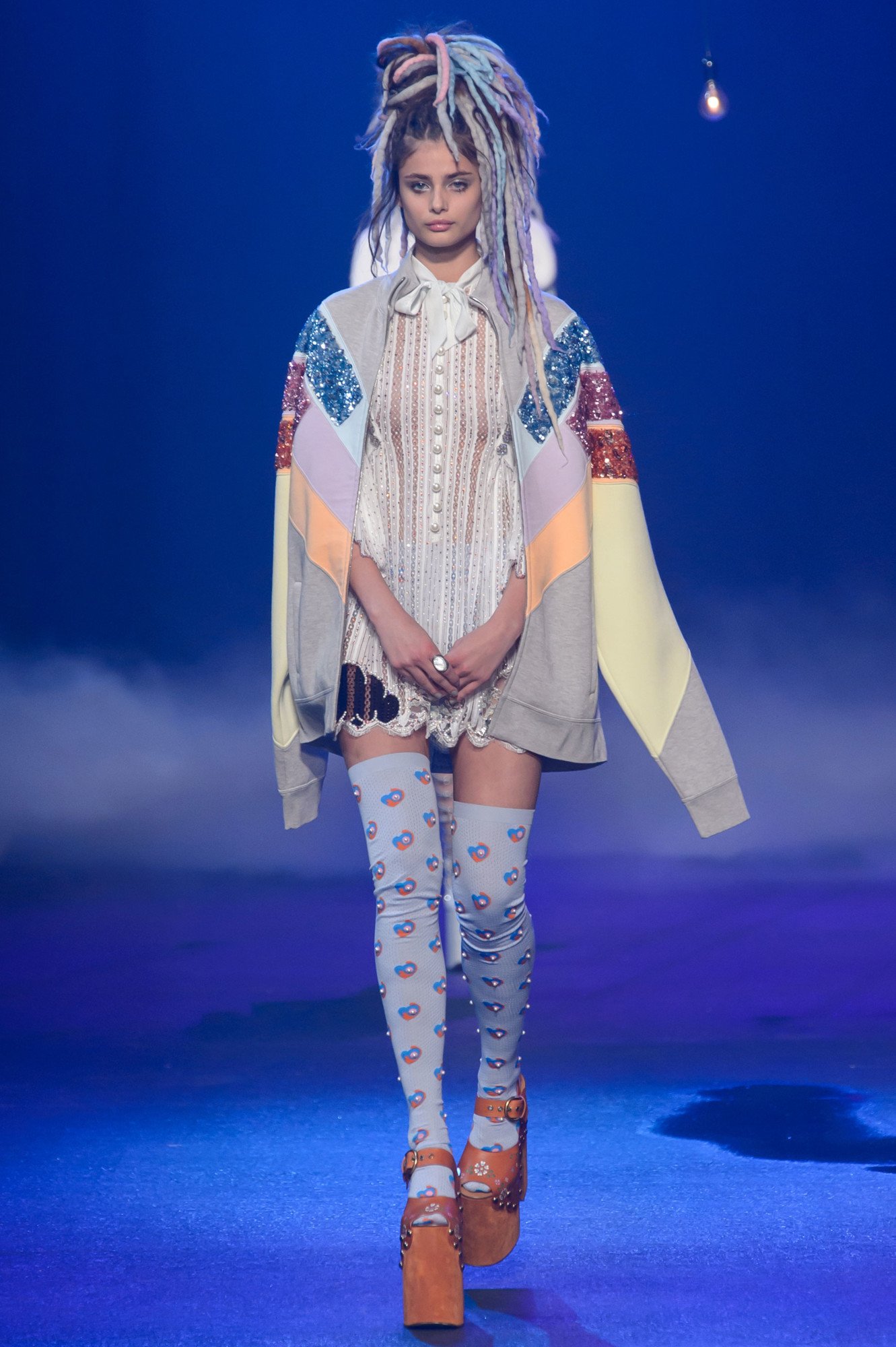La colección pasada, Otoño/Invierno 2016, fue muy dramática y teatral, las modelos usaron plataformas y abrigos muy opulentos al desfilar. Esta temporada fue la continuación y la culminación de esa historia. Fue la liberación del dramatismo en la euforia de la primavera y el verano. Las modelos continuaron calzando plataformas muy altas, lucieron dreadlocks de colores rosas, morados y azules pasteles, mientras modelaron rápidamente al ritmo de la música electrónica.