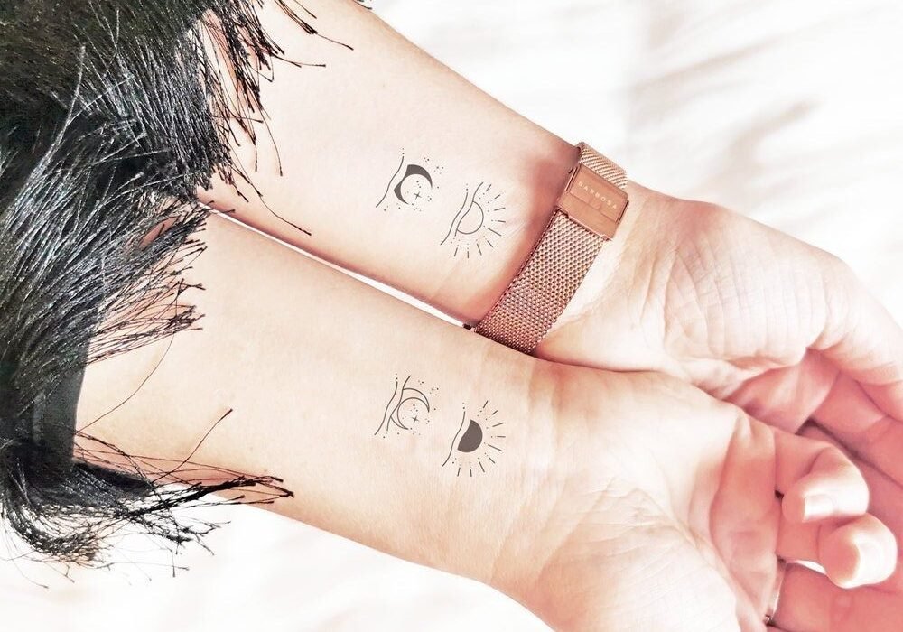 Este es un clásico reinventado en el estilo minimalista. Una amiga se tatúa el sol (símbolo de energía, luz y día) y la otra, la luna (misterio, calma y noche). Más allá de la astronomía, representa cómo son completamente diferentes, pero necesarias para el equilibrio mutuo. Una siempre saca a la otra de la oscuridad, y viceversa. Para hacerlo original, opten por un diseño fine line donde el sol sea solo un perfil con rayos y la luna una media luna con un rostro simple.