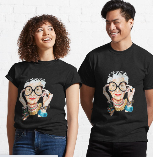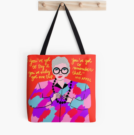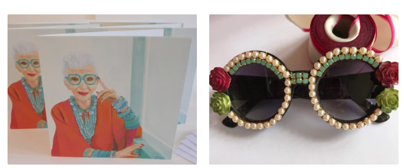 De Iris se puede conseguir mucho en internet. ¿Deseas una bolsa de tela con mucha personalidad? o quizá una blusa como la de Galilea. Desde joyas hasta el libro que cuenta más sobre su traytectoria. Puedes encontrar de todo un poco acerca de este gran ícono de la moda y cultura pop.