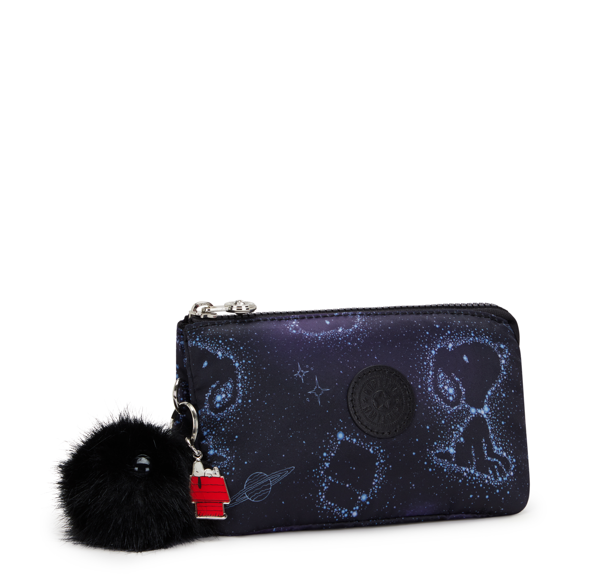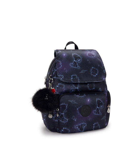 En honor al 75 aniversario de Peanuts, Kipling y Snoopy se reencuentran en una colaboración de ensueño y muy celestial, que incluye nueve estilos divertidos. Confeccionada con poliamida reciclada de tacto suave y forros de poliéster reciclado, cada pieza presenta un profundo tono de cielo nocturno salpicado de gráficos de constelaciones y si miras con atención, podrás encontrar al siempre encantador, Snoopy. ¡Kipling x Snoopy es todo que ver, sigue leyendo y descúbrelo!