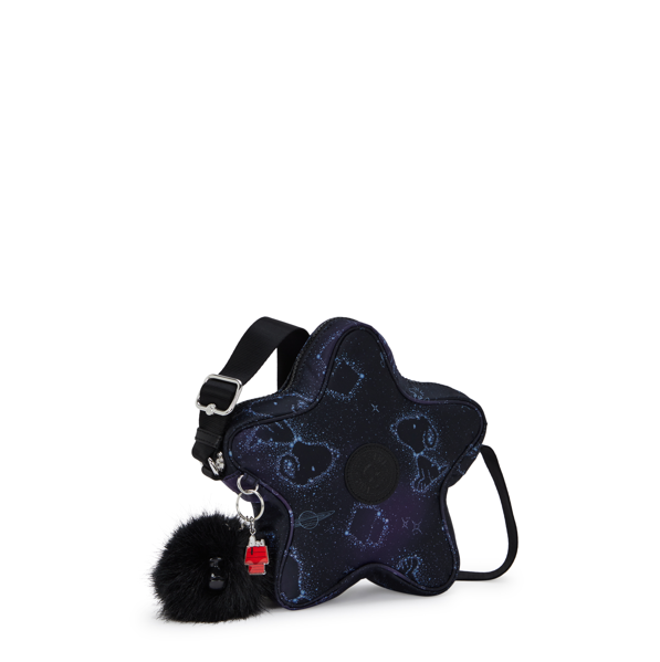 Star crossbody. Con su original forma de estrella, este Star Crossbody complementa el tema celestial a la perfección. Es una forma geométrica divertida, ideal para inyectar brillo y luz a cualquier look. Es el bolso ideal para salir con amigas o para esos recados donde solo necesitas llevar lo esencial. Su diseño único en el tono cielo nocturno y los destellos de constelaciones lo convierten en un accesorio versátil que se siente tan mágico como práctico.