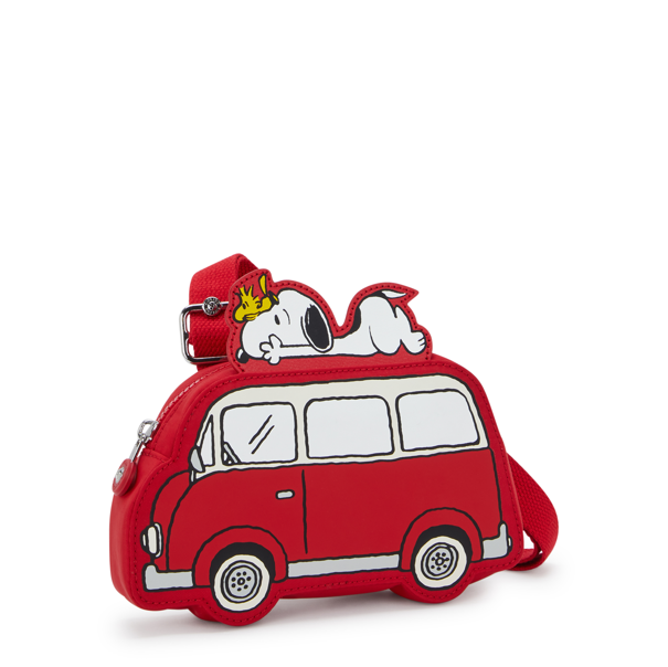 Van bag. Sin duda, la pieza más audaz y un must-have de esta edición limitada. Es un bolso con la silueta de un coche, en cuyo techo Snoopy y Woodstock se relajan bajo las estrellas. Este Van Bag Kipling es más que un bolso cruzado; es una invitación a la aventura y un guiño al espíritu hippie y libre de los 70, donde Peanuts ya era un ícono. Su diseño en el nylon icónico de la marca, ligero y duradero, lo hace perfecto para viajes o para romper con la monotonía del outfit diario.