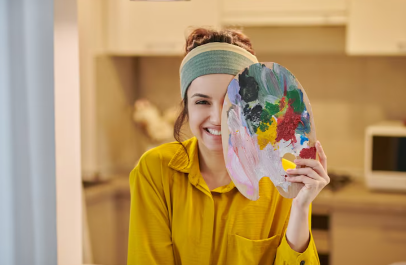 - Para la tristeza o apatía (energía y optimismo). Usa una paleta con amarillo, naranja y un toque de blanco. Estos colores, conocidos por su capacidad para elevar el ánimo, pueden ayudarte a sentirte más enérgica y positiva.