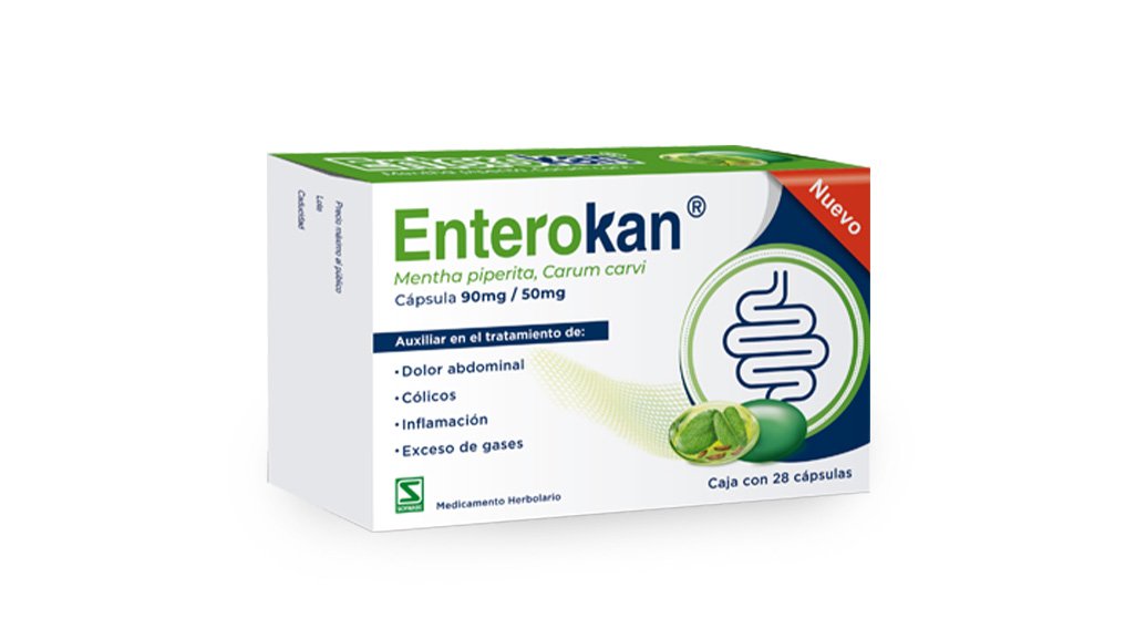 Un opción de origen natural, para el manejo específico del dolor y la distensión, el aceite de Mentha piperita en combinación con Carum carvi (alcaravea), como en el producto Enterokan®, presenta propiedades espasmolíticas y reguladoras del dolor abdominal, por lo cual sus componentes están recomendados en guías clínicas y consensos médicos para aliviar los síntomas asociados al SII.4,5