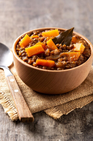 - Cena. Lentejas estofadas con zanahorias y patatas, un plato tradicional que reconforta y nutre.