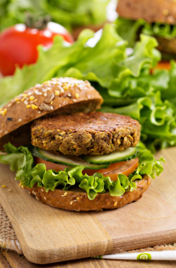- Cena. Hamburguesas vegetarianas o de carne magra, servidas en pan integral y acompañadas de una ensalada de la huerta.