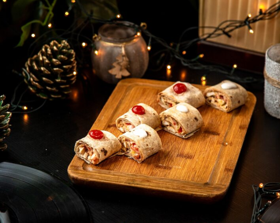 Fíjate esta versión de wraps navideño, puedes hacer enrolladitos de jamon de pavo, aceitunas, queso crema, alcaparras y servir como botanas antes de la comida fuerte. Tus invitados amarán esto, aparte, es algo bastante ligero para una noche especial.