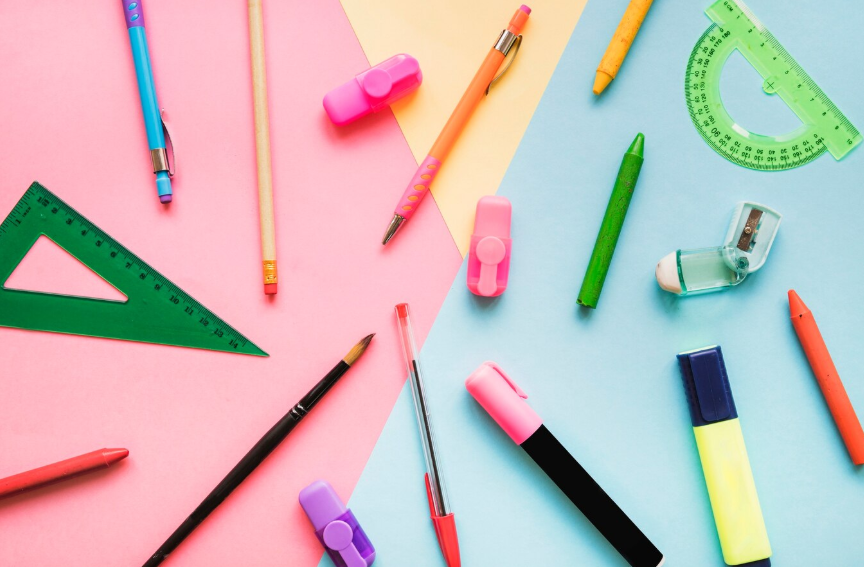 - Útiles. Cuadernos con hojas limpias, lápices de colores a medio usar, juegos de geometría, reglas, calculadoras, plumas que aún funcionan.