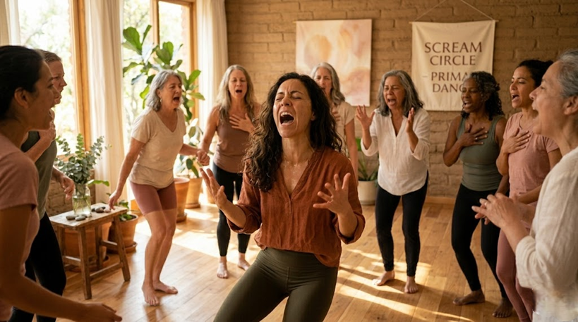 ¿Cuándo fue la última vez que te permitiste expresar tu rabia o tu frustración de forma física y sonora? Los scream circles (círculos de grito terapéutico) se han vuelto virales por una razón: las mujeres estamos cansadas de ser «silenciosas y contenidas». Estos espacios seguros permiten que el grito actúe como una válvula de escape para la presión acumulada en el diafragma y el pecho.