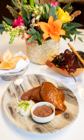 Considerado uno de los grandes símbolos de la cocina mexicana, surge del encuentro entre ingredientes prehispánicos y especias introducidas en la Colonia. Su complejidad —que integra chiles secos, semillas, especias y chocolate— lo ha convertido en platillo ceremonial y festivo por excelencia. En Hacienda de los Morales, se elabora en casa respetando esta tradición histórica.